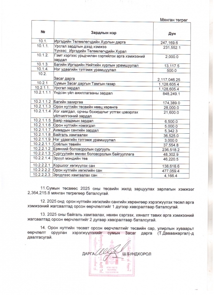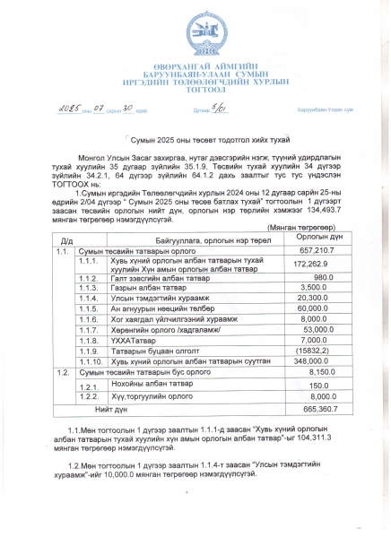 Баруунбаян-Улаан сумын 2025 оны батлагдсан төсөв