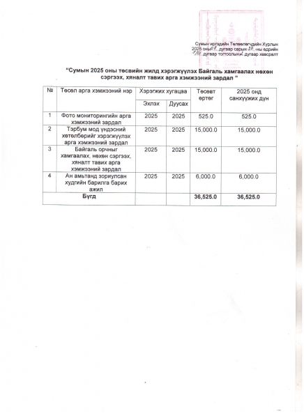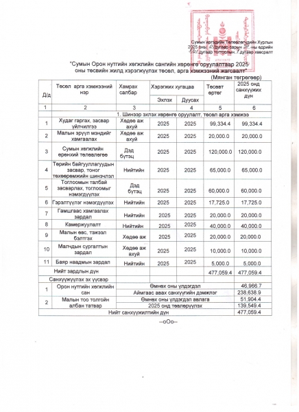 Баруунбаян-Улаан сумын 2025 оны худалдан авах ажиллагааны төлөвлөгөө