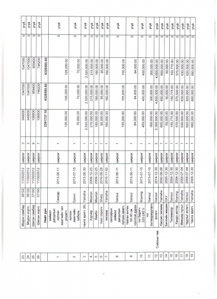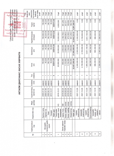 Сумын иргэдийн Төлөөлөгчдийн хурлаар актлуулахаар шийдвэрлүүлсэн хөрөнгийн жагсаалт