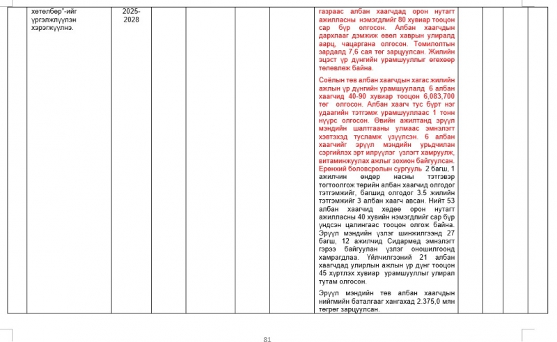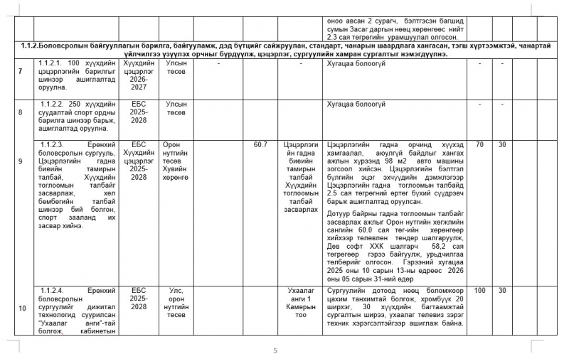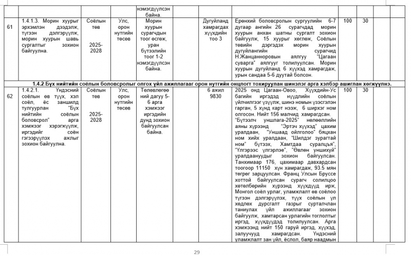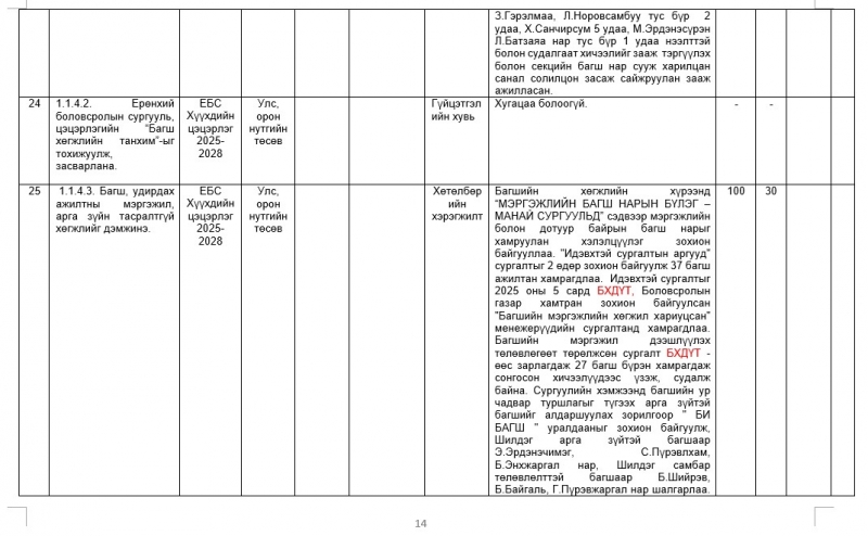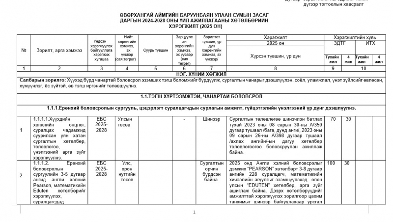Баруунбаян-Улаан сумын 2025 оны худалдан авах ажиллагааны төлөвлөгөө