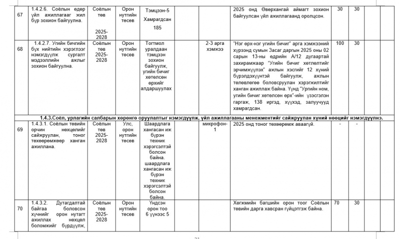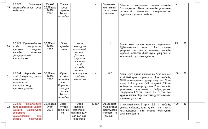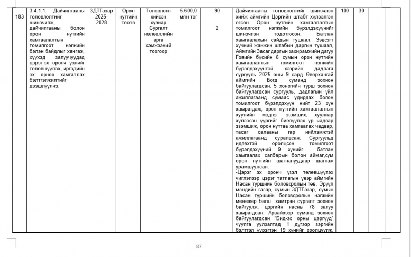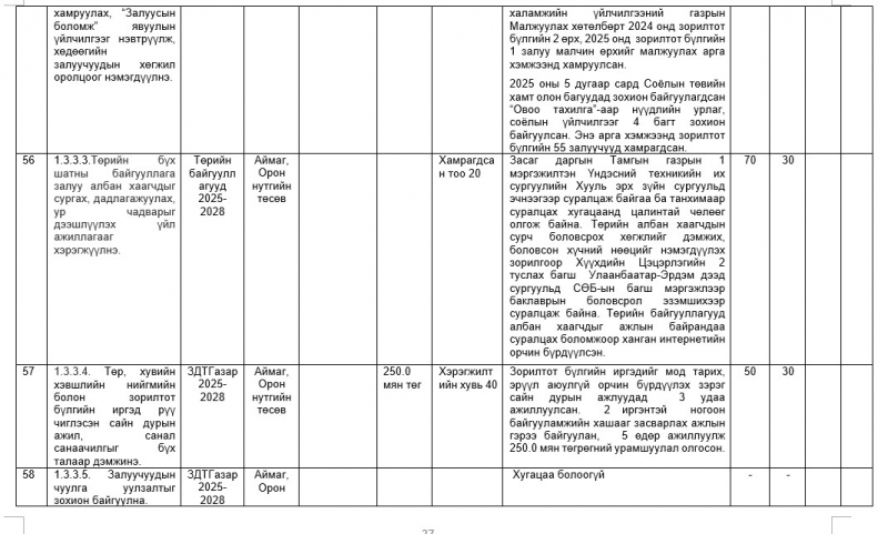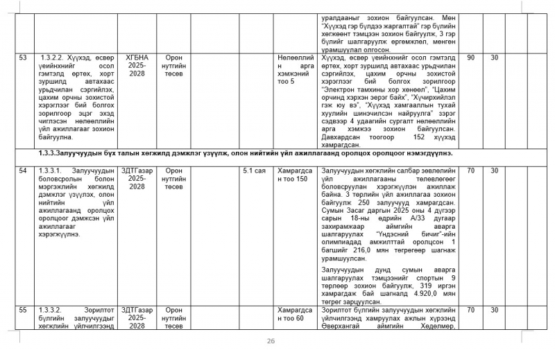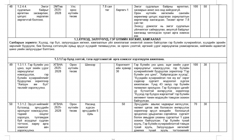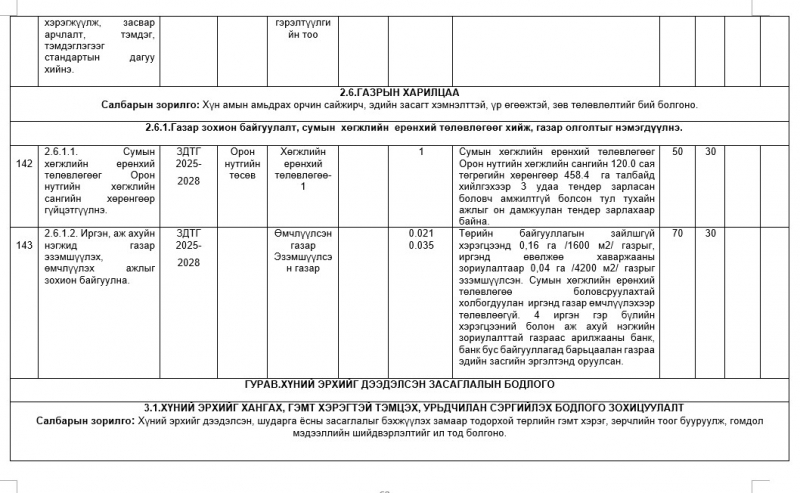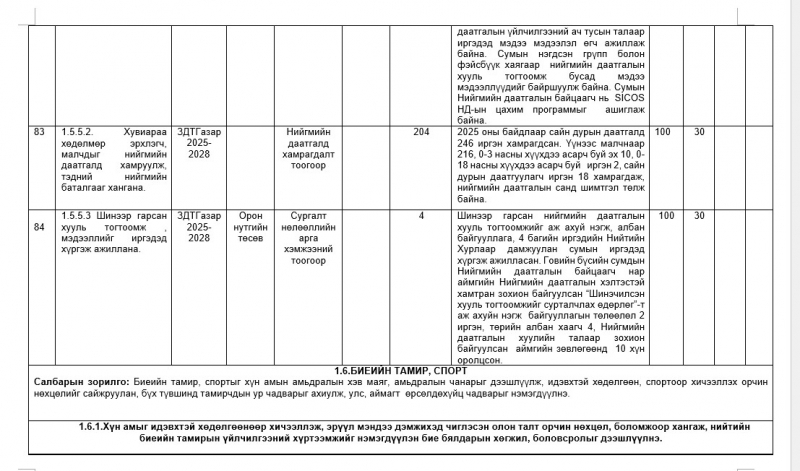 Сумын Засаг даргын 2024-2028 оны үйл ажиллагааны хөтөлбөр