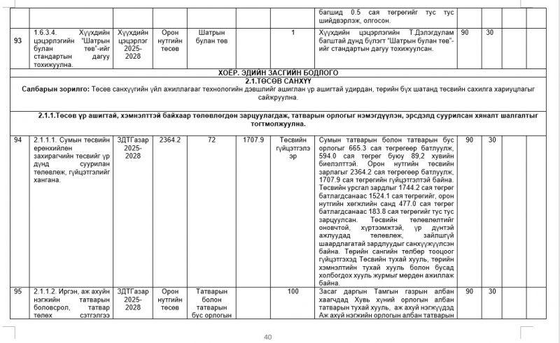 Баруунбаян-Улаан сумын 2025 оны батлагдсан төсөв
