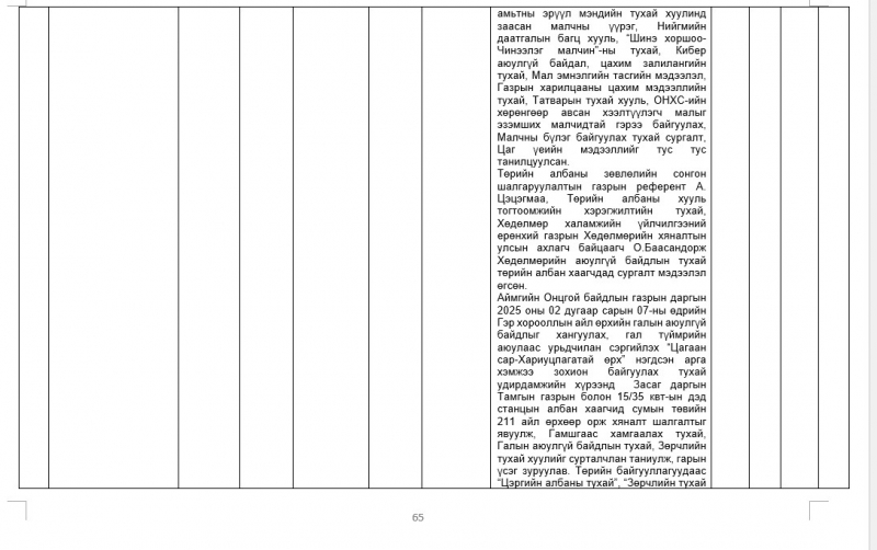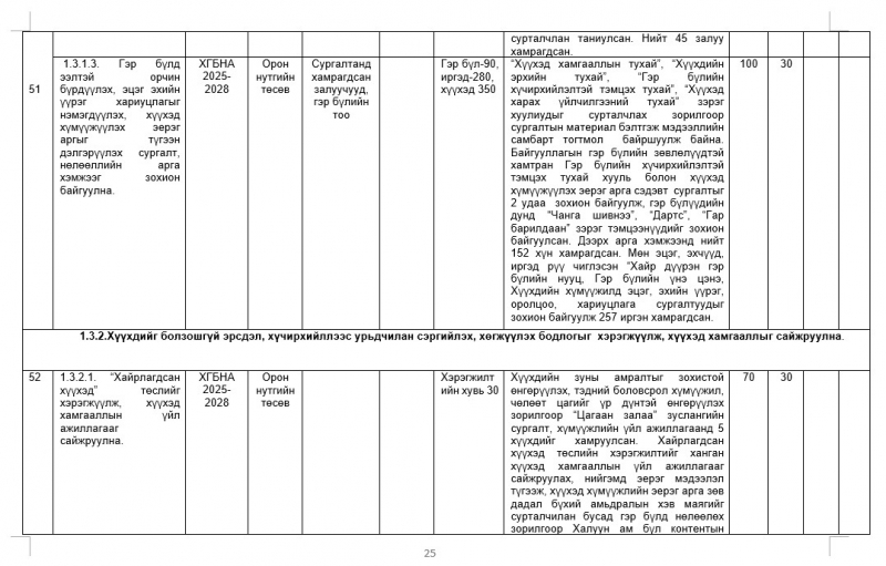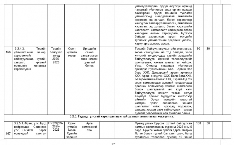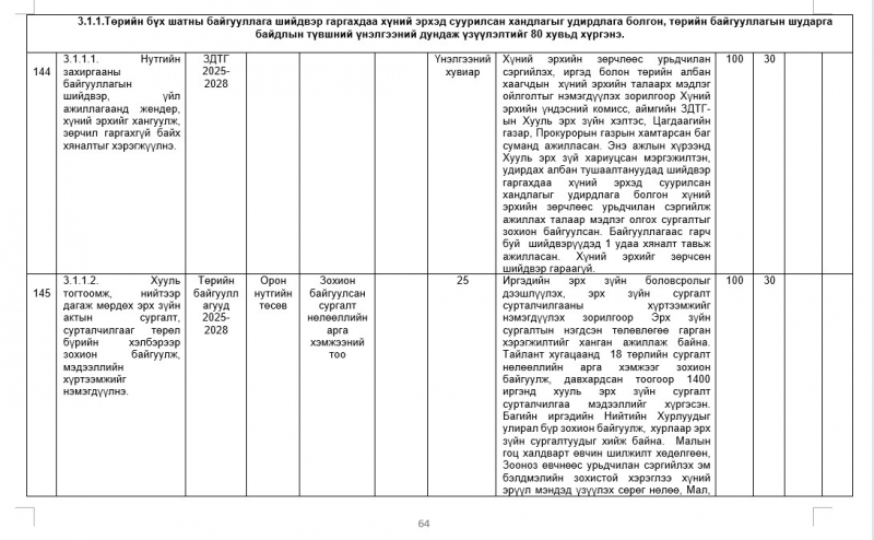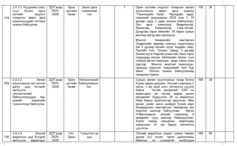 2025 оны хууль тогтоомж, шийдвэрийн биелэлт