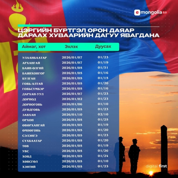 2026 ОНЫ ЦЭРГИЙН БҮРТГЭЛДЭЭ ИДЭВХТЭЙ ХАМРАГДАХЫГ УРИАЛЖ БАЙНА