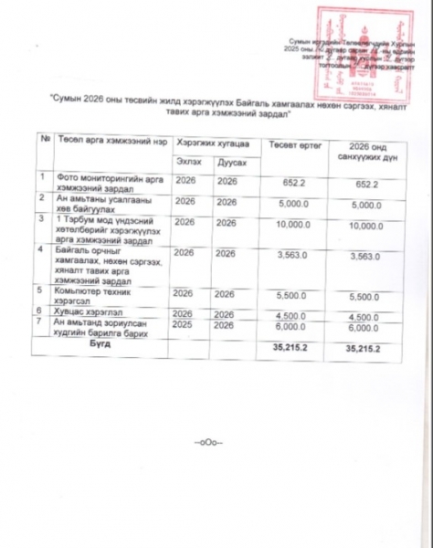 ББУлаан сумын 2026 оны төсвийн төсөл