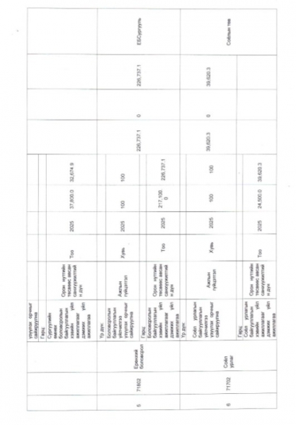 Баруунбаян-Улаан сумын 2025 оны худалдан авах ажиллагааны төлөвлөгөө